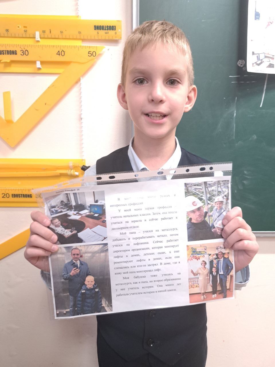 Каждый школьник по очереди выходил к доске и с неподдельным воодушевлением рассказывал о труде своих мам и пап. Кто-то с гордостью описывал работу мамы-бухгалтера («Она ведёт все подсчёты и всегда точна!»), а другой — профессию отца-строителя («Он возводит целые дома, будто собирает огромный конструктор!»). Приятно было видеть, как дети искренне восхищаются своими родителями и уже задумываются о том, чтобы в будущем выбрать похожее дело.